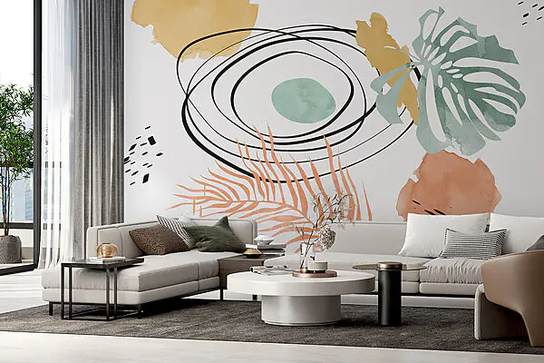 18.23 €9.12 €Fototapeten Elegante Blätter tanzen in sanften Farbtönen