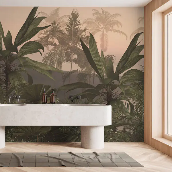 16.33 €9.79 €Fototapeten Eine Gruppe von Palmen in einem nebligen Wald
