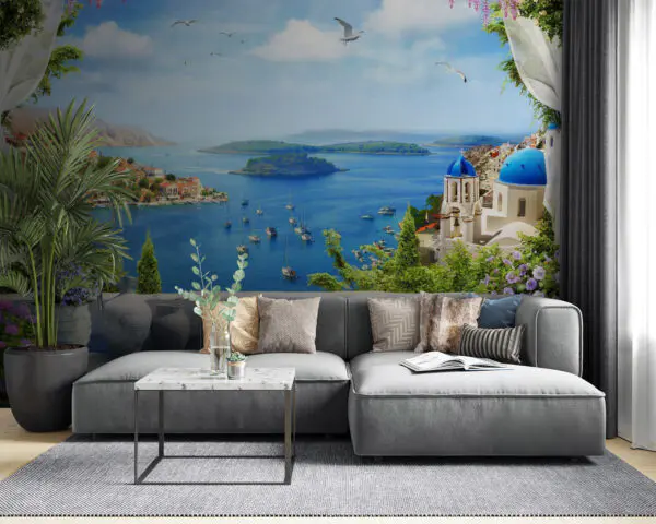 16.33 €9.79 €Fototapeten Blick auf eine Stadt und Wasser von einem Balkon aus