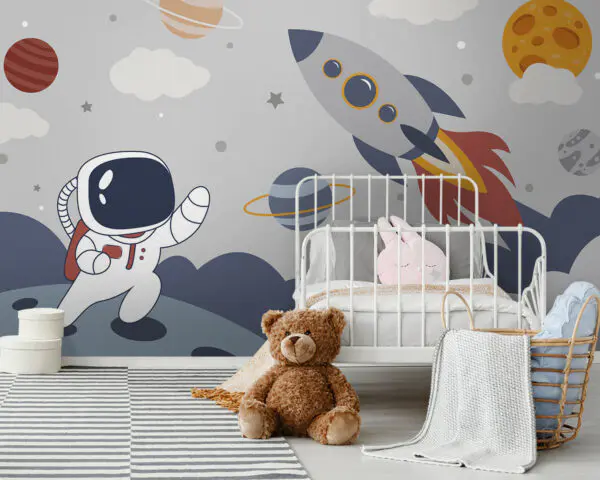 16.33 €9.79 €Fototapeten Cartoon eines Astronauten auf einem Planeten mit einer Rakete am Himmel