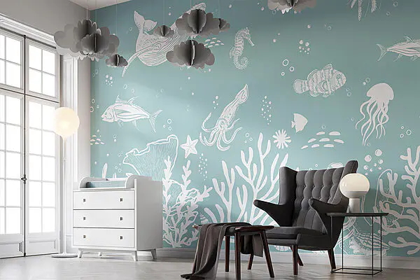 16.33 €9.79 €Fototapeten Ein weißer Umriss von Meerestieren