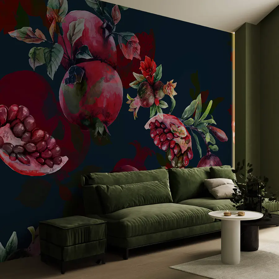 Fototapeten Muster aus Granatäpfeln und Blumen