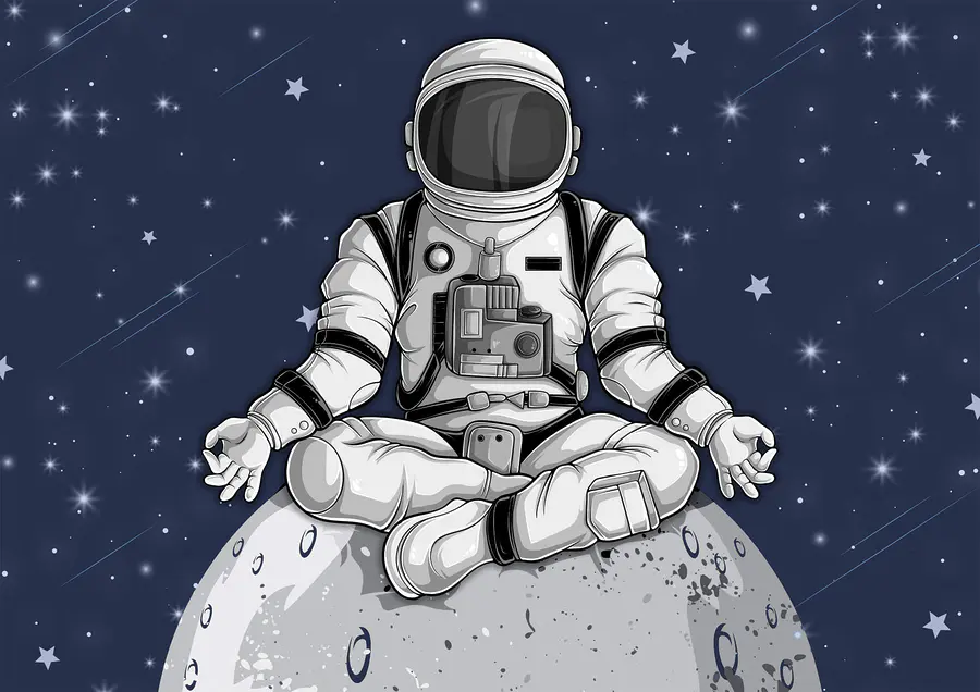 Fototapeten Ein Astronaut sitzt auf dem Mond