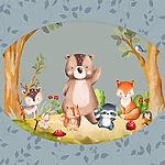 Fototapeten Cartoon von Tieren in einem Wald