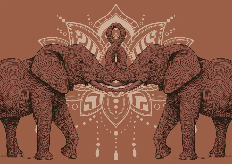 Fototapeten Zwei Elefanten, die sich mit ihren Rüsseln berühren