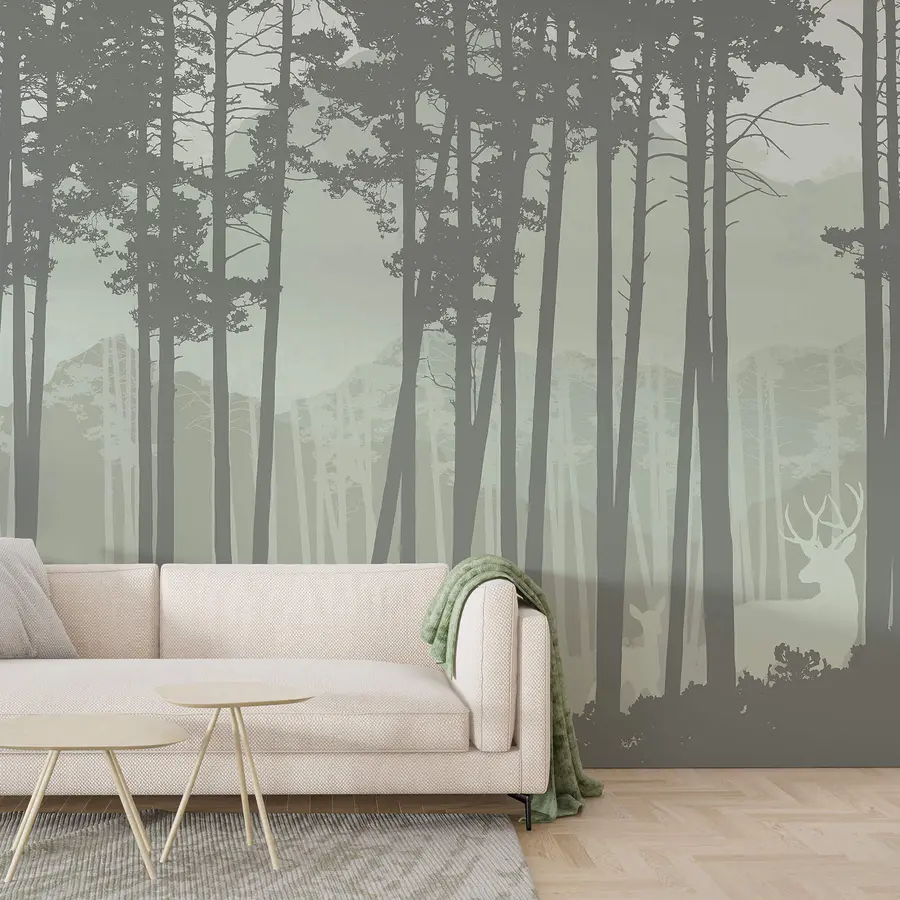16.08 €8.84 €Fototapeten Landschaft mit Bergen, Bäumen und Nebel