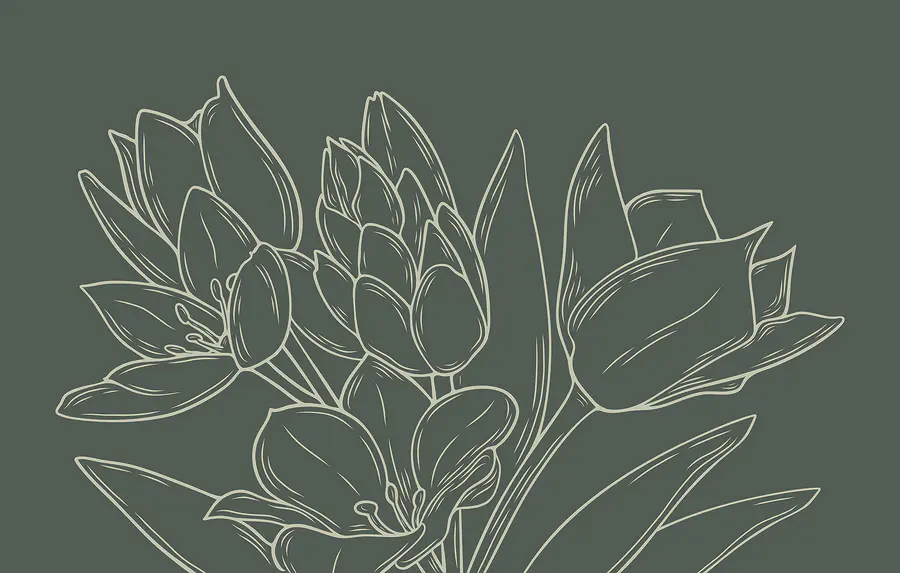 Fototapeten Zeichnung von Blumen auf einer Pflanze
