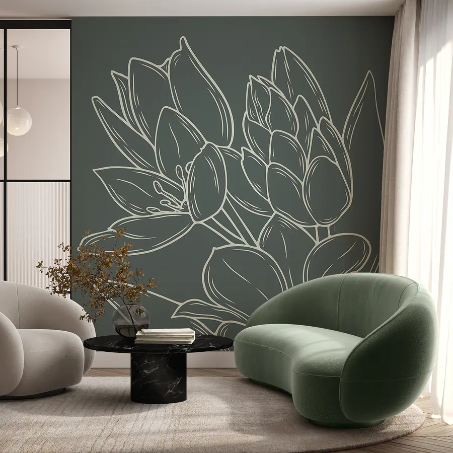 Verwandeln Sie Ihren Raum mit dieser atemberaubenden Fototapete, die eine schöne Zeichnung von Blumen auf einer Pflanze zeigt. Perfekt für alle, die sich nach einem Hauch von Natur in ihrem Zimmer sehnen, ohne sich um Bewässerung oder Sonnenlicht kümmern zu müssen. Stellen Sie sich vor, Sie betreten einen Raum und haben das Gefühl, einen ruhigen Garten zu betreten - ohne grünen Daumen! Das schlichte, aber elegante Design verleiht ihm ein modernes Flair und sorgt für viel Gesprächsstoff. Ob in einem gemütlichen Wohnzimmer oder einem schicken Büro, dieses Wandbild sorgt mühelos für gute Laune. Stellen Sie sich nur die neugierigen Blicke und die netten Komplimente von Freunden vor. Es ist, als würde man seinen Wänden ein neues Outfit verpassen, das sie noch jahrelang tragen werden. Wer würde sich das nicht wünschen?