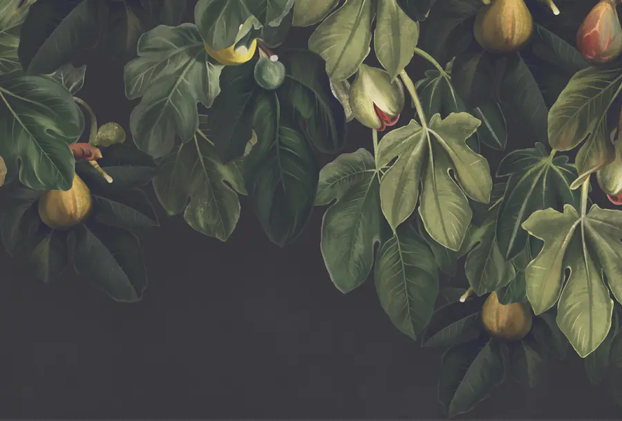 Fototapeten Üppiges Laub mit lebhaftem Fruchtansatz