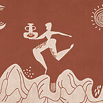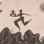 Fototapeten Zeichnung eines Mannes, der einen Topf hält, und eines Topfes auf einem Berg