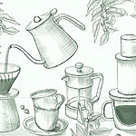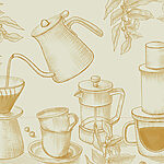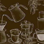 Fototapeten Zeichnung des Brühvorgangs von Kaffee