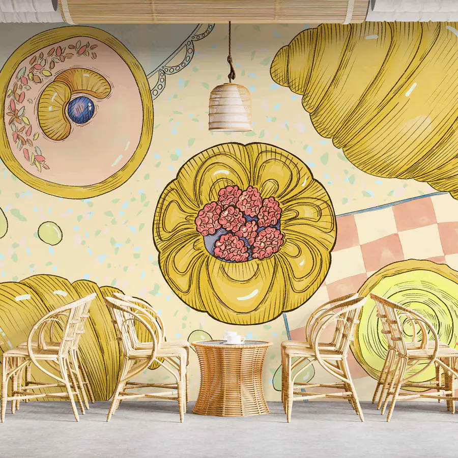 Fototapeten Zeichnung von Backwaren und Gebäck