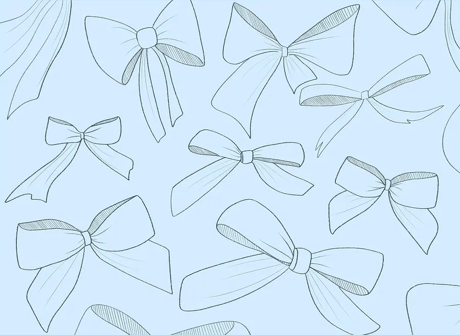 Fototapeten Muster aus Schleifen auf blauem Hintergrund