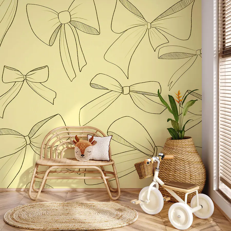Fototapeten Muster aus Schleifen auf gelbem Hintergrund