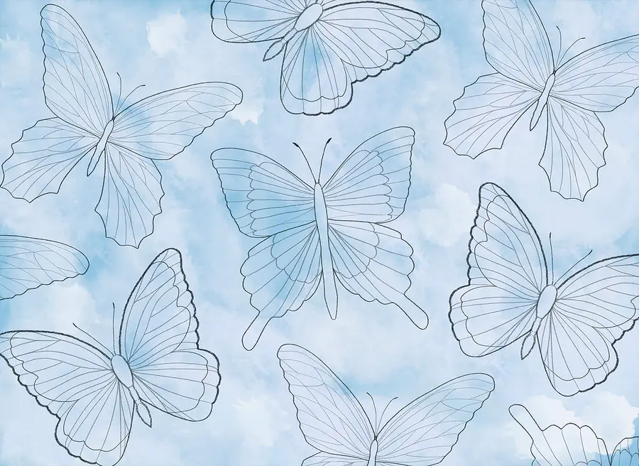 Fototapeten Muster aus Schmetterlingen auf blauem Hintergrund