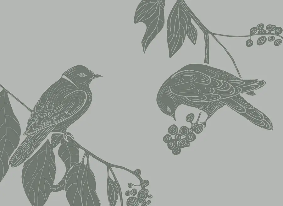 Fototapeten Vögel auf einem Zweig mit Blättern