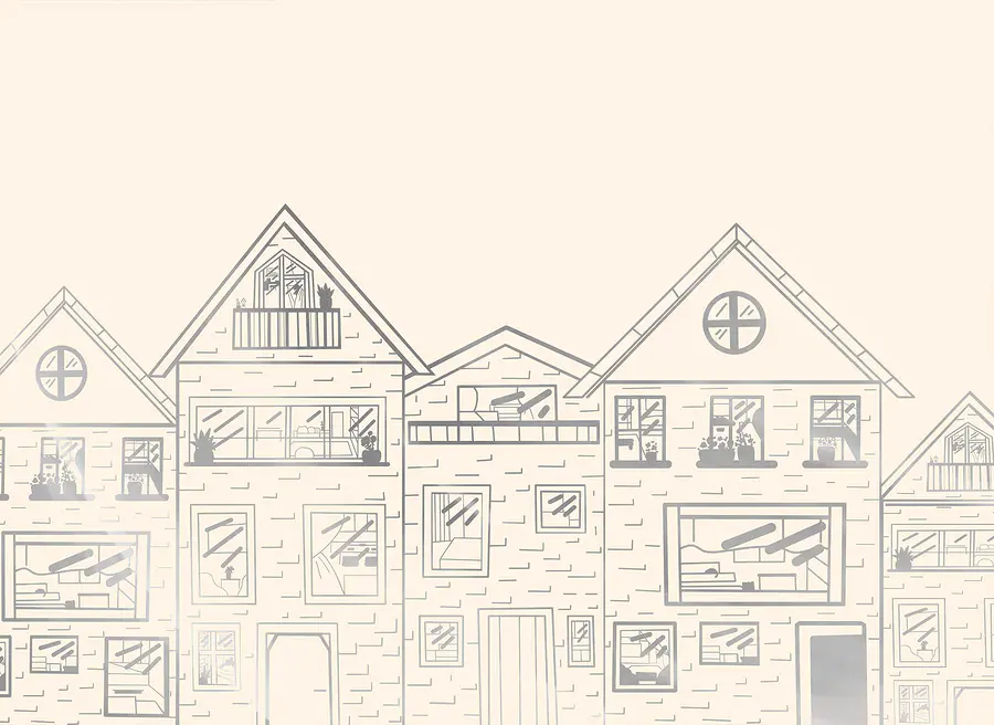 Fototapeten Zeichnung einer Häuserreihe