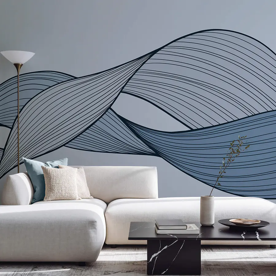 Fototapeten Blaue und schwarze Wellenlinien