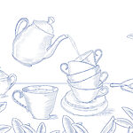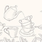 Fototapeten Teekanne, die in einen Stapel Teetassen gießt