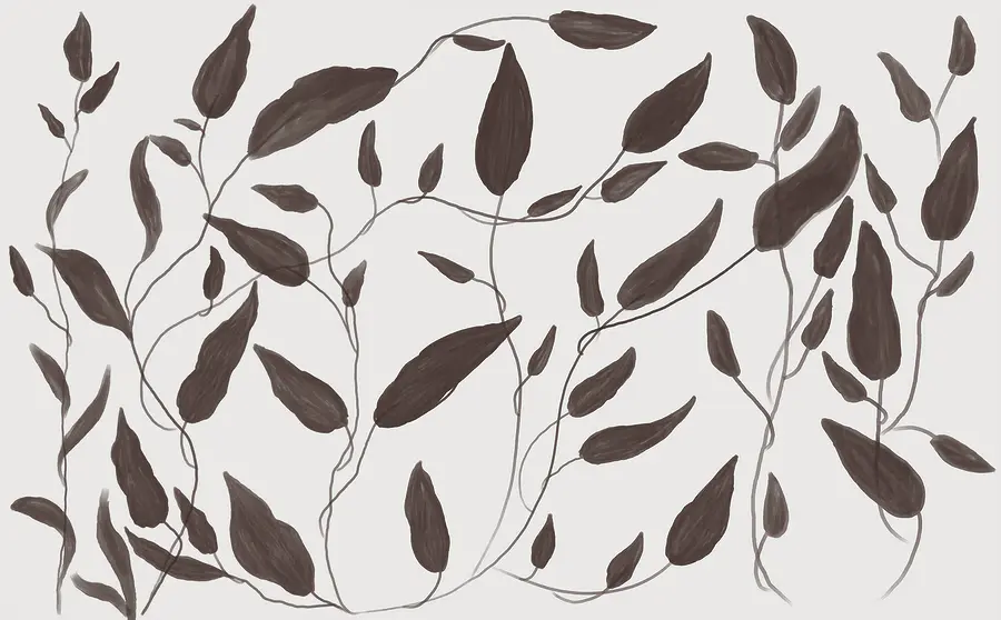 Fototapeten Zeichnung von Blättern auf weißem Hintergrund