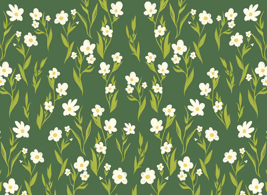 Fototapeten Muster aus weißen Blüten und grünen Blättern