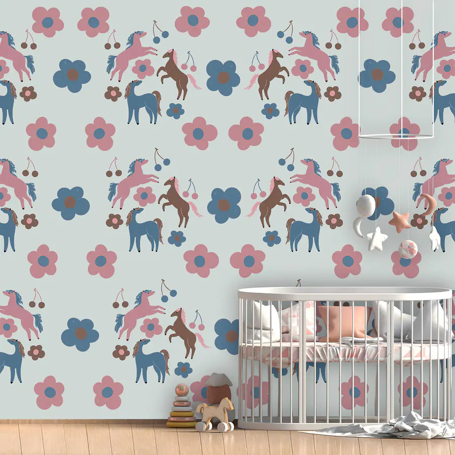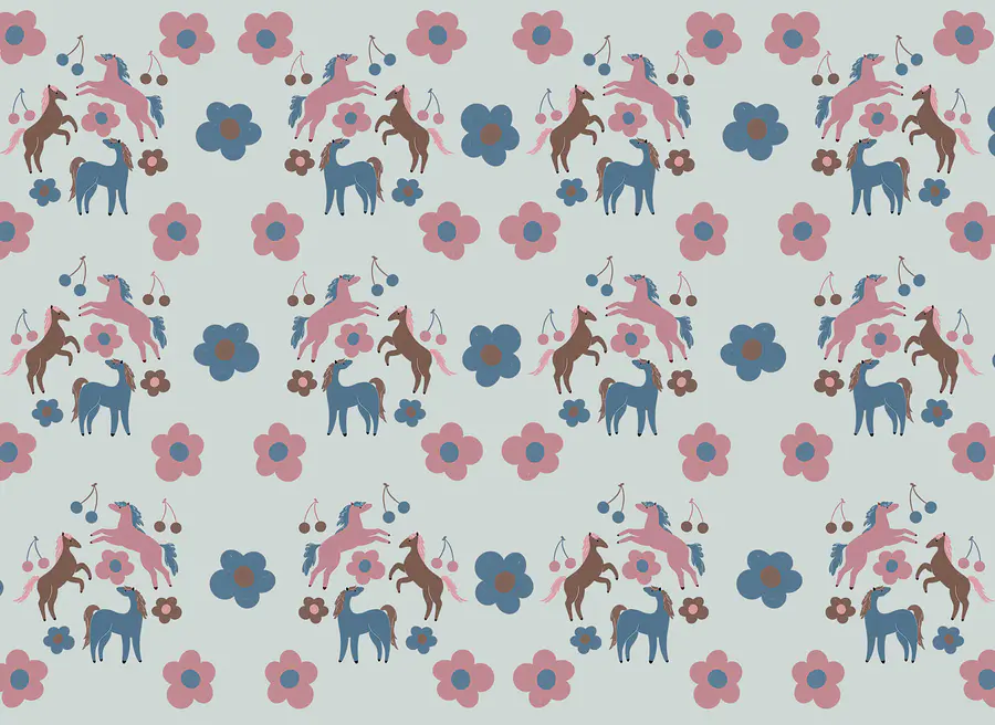 Fototapeten Muster aus Pferden und Blumen