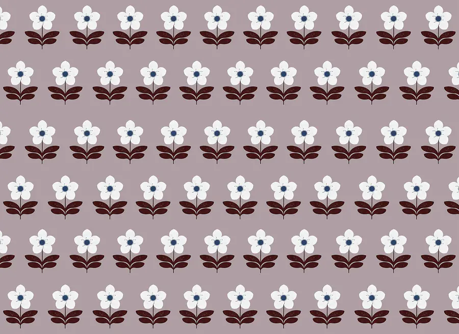 Fototapeten Muster aus weißen Blüten und braunen Blättern