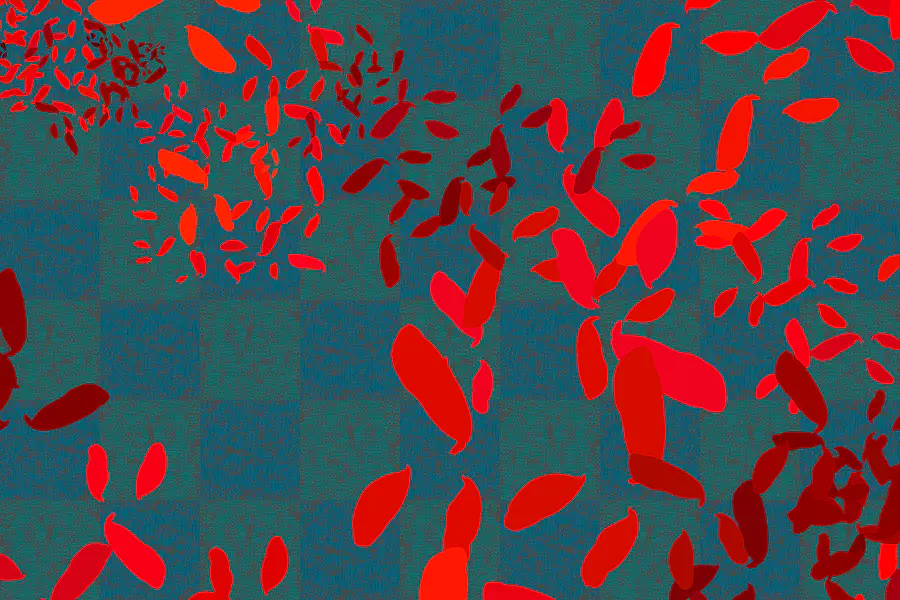 Fototapeten Rote Blätter auf blauem Hintergrund