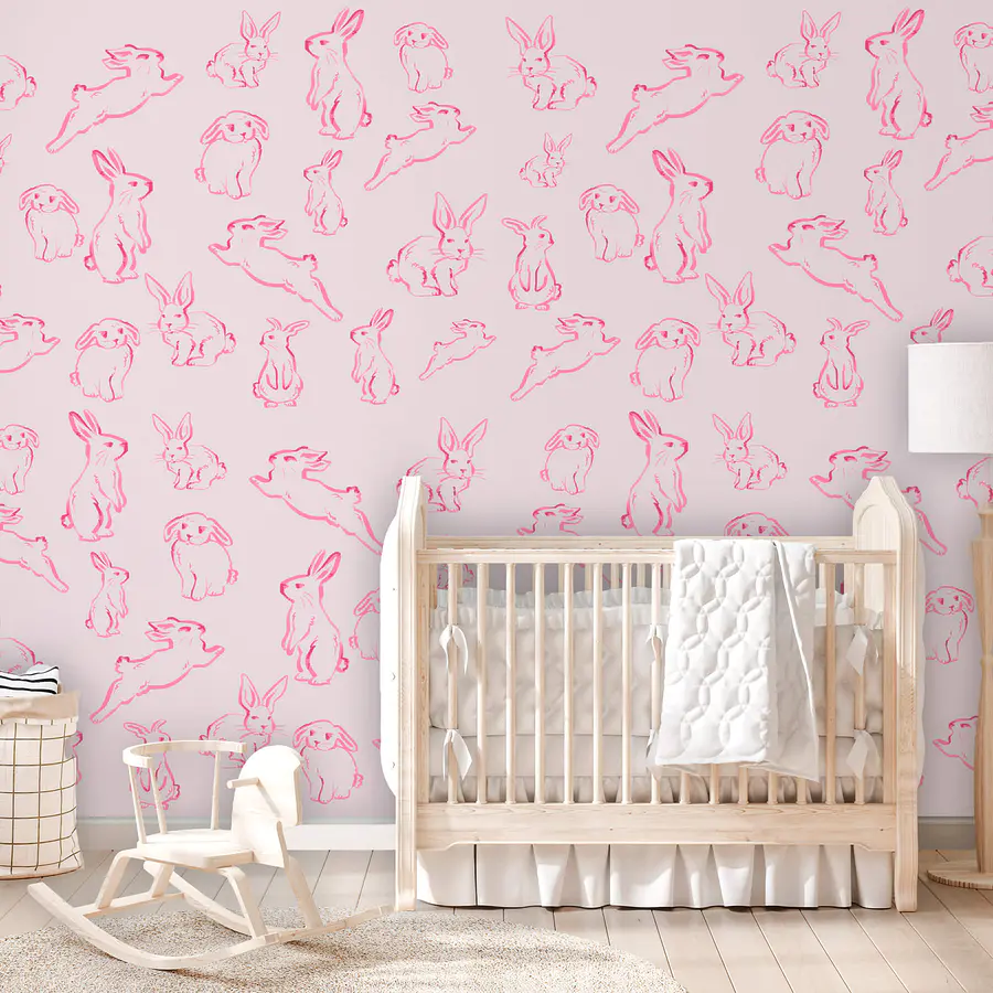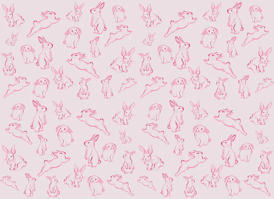 Fototapeten Gruppe von Kaninchen in Rosa gezeichnet