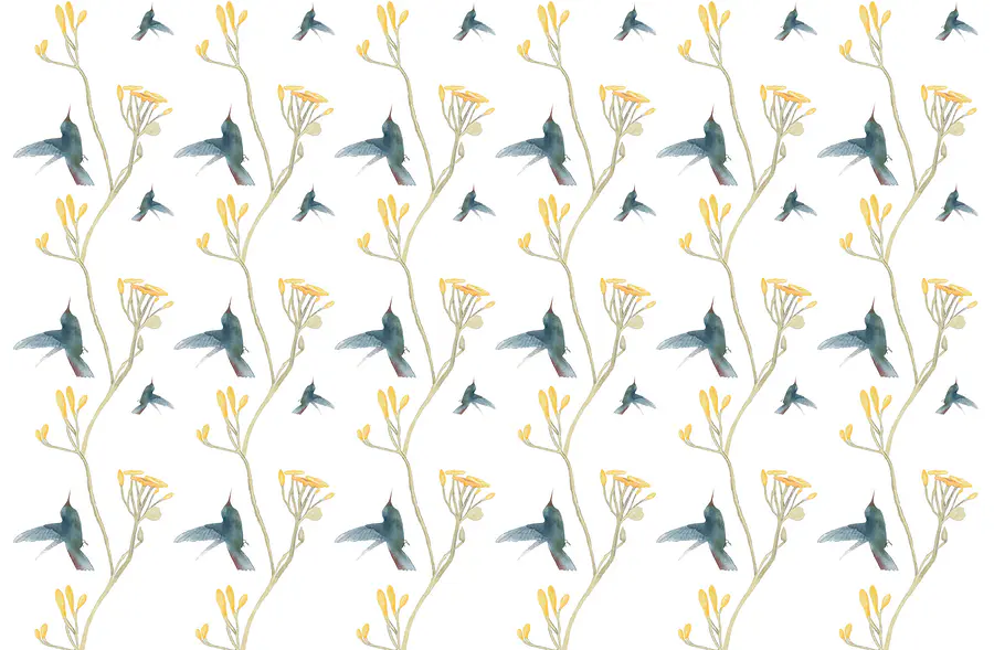 Fototapeten Muster aus Vögeln und Blumen