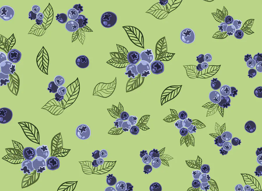 Fototapeten Motiv mit Heidelbeeren und Blättern