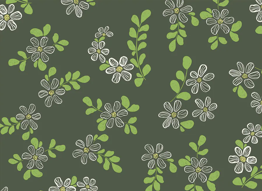 Fototapeten Muster aus weißen Blüten und grünen Blättern