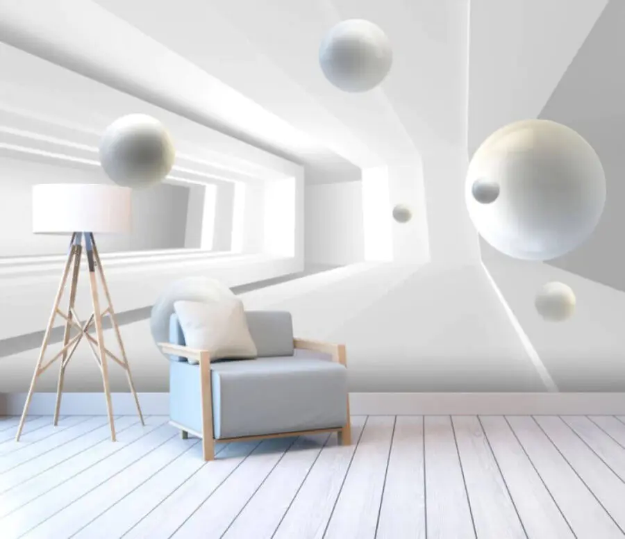 Fototapeten Weiße Kugeln in einem Raum
