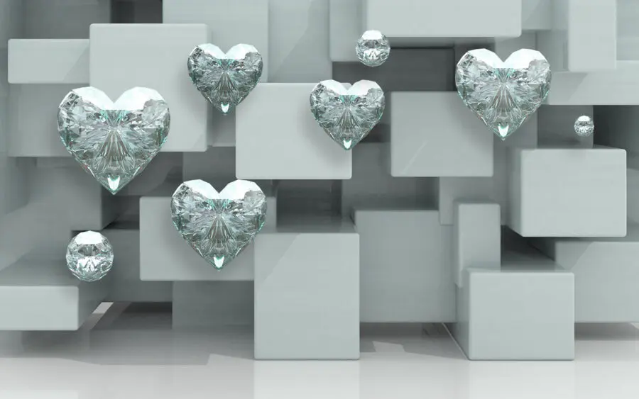 Fototapeten Gruppe von Diamanten an einer Wand