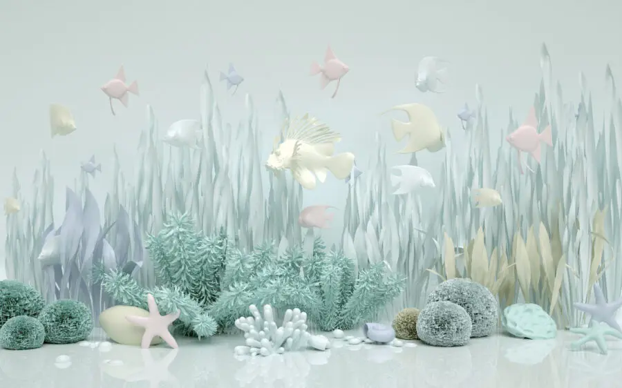 Tauchen Sie ein in eine verträumte Unterwasserwelt mit dieser bezaubernden Fototapete, die das Meeresleben mit verspielten Fischen und üppigen Wasserpflanzen zeigt. Stellen Sie sich vor, Sie betreten einen Raum und haben sofort das Gefühl, am Meer zu sein, wo Sie von Korallen und sanften Wellen umspült werden. Diese Fototapete sorgt für einen Hauch von Ruhe und eignet sich perfekt für ein Wohnzimmer, ein Kinderzimmer oder sogar eine gemütliche Leseecke. Die sanften Farben laden zu einer ruhigen Atmosphäre ein und geben Ihnen das Gefühl, sich ein kleines Stückchen Paradies in Ihr Zuhause geholt zu haben. Es ist die Art von Dekoration, die Gäste dazu bringt, stehen zu bleiben und zu lächeln und von ihren eigenen Abenteuern am Meer zu erzählen. Warum verwandeln Sie nicht eine langweilige Wand in eine wunderbare Flucht ans Meer? Wer wünscht sich nicht jeden Tag eine kleine Erinnerung an die Schönheit des Meeres?