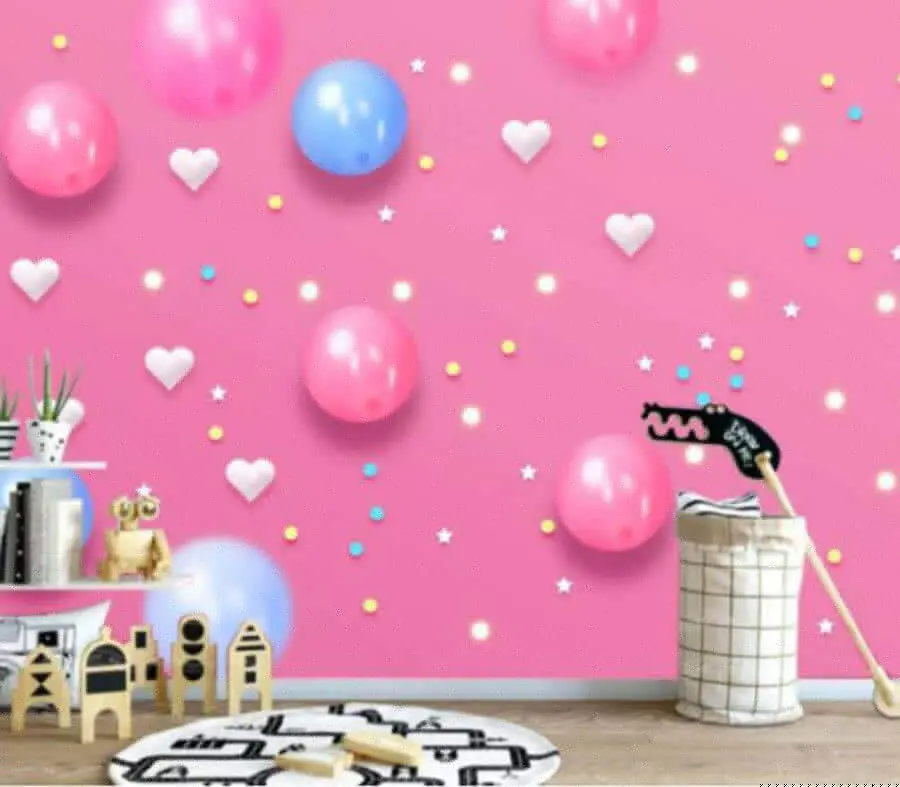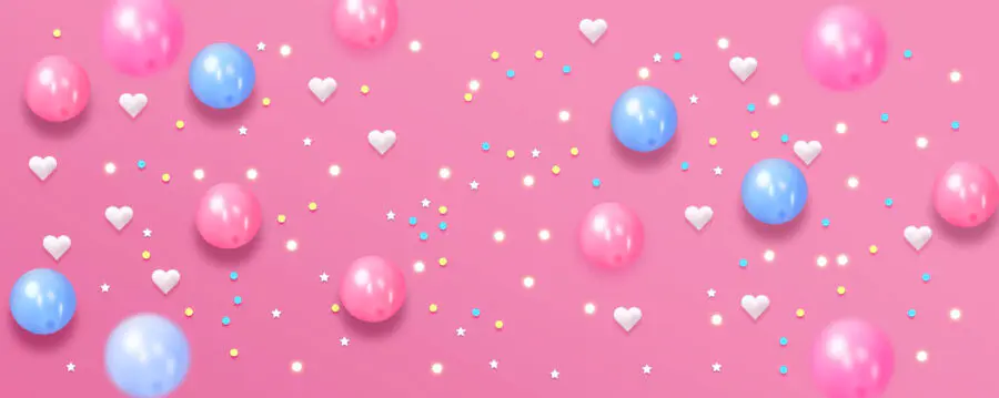 Fototapeten Rosa Hintergrund mit weißen und blauen Luftballons und Sternen