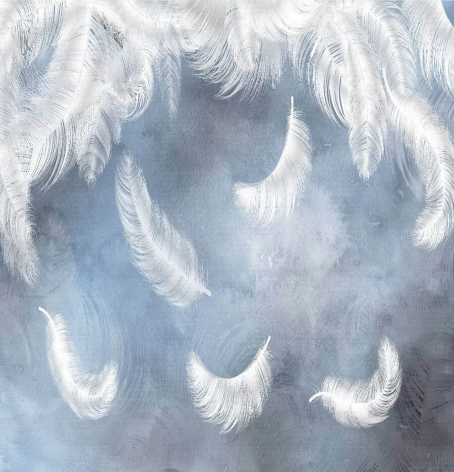 Fototapeten Weiße Federn auf blauem Hintergrund