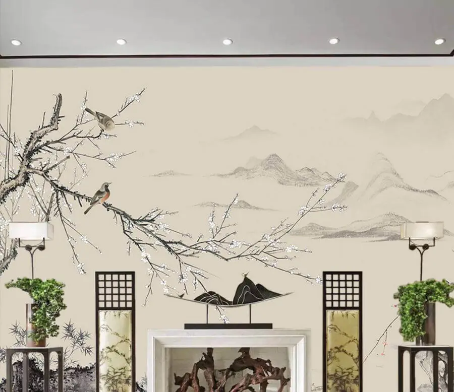 Fototapeten Malerei von Vögeln auf einem Zweig