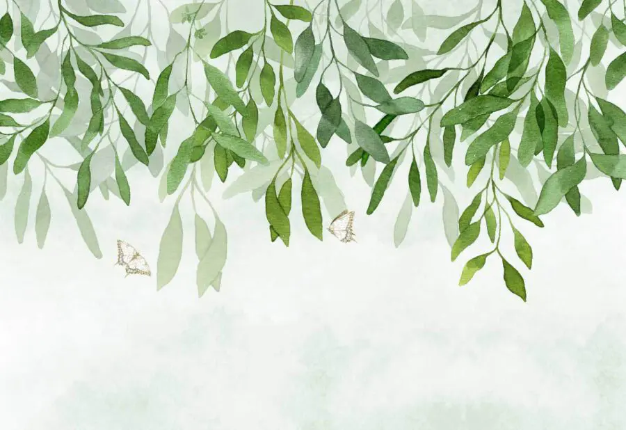 Fototapeten Malerei von Blättern und Schmetterlingen