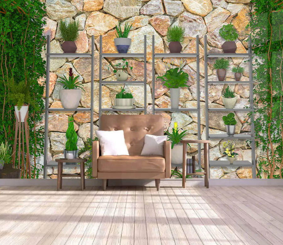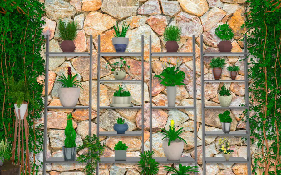 Fototapeten Gruppe von Pflanzen auf Regalen