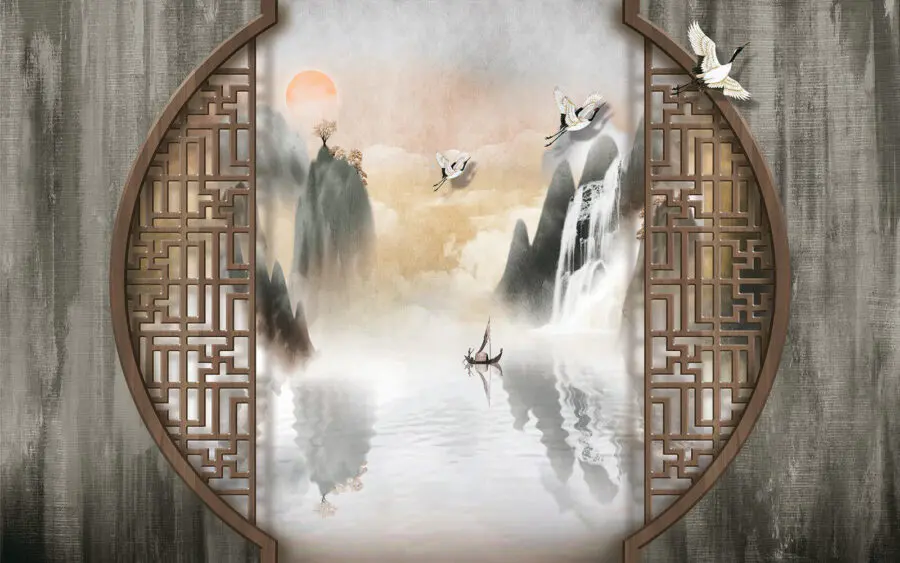 15.51 €9.31 €Fototapeten Fenster mit Wasserfall und durchfliegenden Vögeln