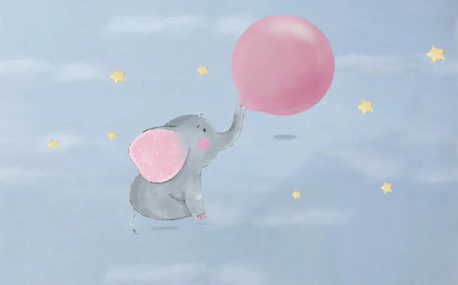 Fototapeten Karikatur eines Elefanten, der einen Luftballon hält