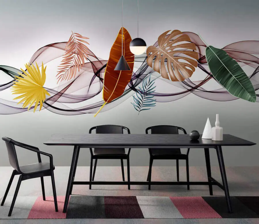 Fototapeten Gruppe von Blättern und Wellen