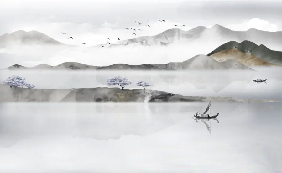 15.51 €9.31 €Fototapeten Ein Aquarell von Bergen und Nebel