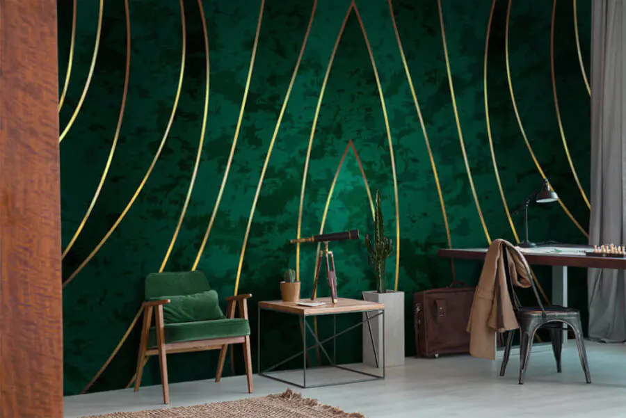 Verwandeln Sie Ihren Raum mit dieser lebendigen Fototapete mit dem Namen "Waves of Color and Texture Combine". Es ist wie ein kleiner Ozean der Kunst direkt an Ihrer Wand, in dem sich tiefe Grüntöne und goldene Linien vermischen. Stellen Sie sich vor, Sie betreten einen Raum, und BAM - Ihre Augen tanzen über die fließenden Wellen und heben sofort Ihre Stimmung. Dieses Wandbild eignet sich perfekt für einen gemütlichen Wohnbereich oder ein trendiges Büro und verleiht dem Raum einen Hauch von Persönlichkeit, von dem jeder spricht. Diese Fototapete steht nicht einfach nur da; sie lädt zu Gesprächen ein, regt die Fantasie an und lässt die Leute denken: "Wow, wo hast du das gefunden?" Lassen Sie sich von den Wellen mitreißen und beobachten Sie, wie sie perfekt mit Ihrem Stil harmonieren.