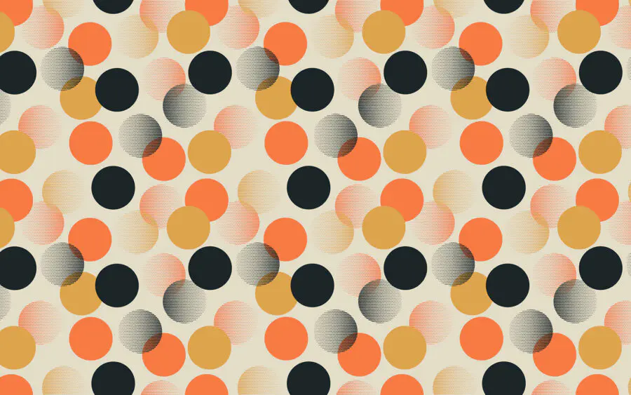Fototapeten Muster aus orangefarbenen und schwarzen Kreisen