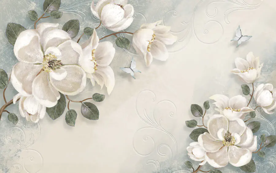 Verwandeln Sie jeden Raum in eine heitere Oase mit dieser atemberaubenden Fototapete mit weißen Blumen und zarten Blättern auf einem weichen Hintergrund. Stellen Sie sich vor, Sie schlürfen einen Tee und betrachten diese Blüten - und Ihre Sorgen sind wie weggeblasen, oder? Die sanften Farbtöne bringen einen Hauch von Ruhe und einen Hauch von Natur ins Haus und eignen sich daher perfekt für ein gemütliches Wohnzimmer oder ein ruhiges Schlafzimmer. Und mal ehrlich, wer möchte nicht einen oder zwei fantasievolle Schmetterlinge in seinem Zimmer herumflattern sehen? Es ist wie ein kleines Kunstwerk, in dem man leben kann. Diese Fototapete belebt nicht nur die Wände, sondern bringt auch einen Hauch von floraler Eleganz in den Alltag.