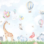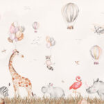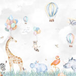 Fototapeten Aquarell von Tieren und Luftballons