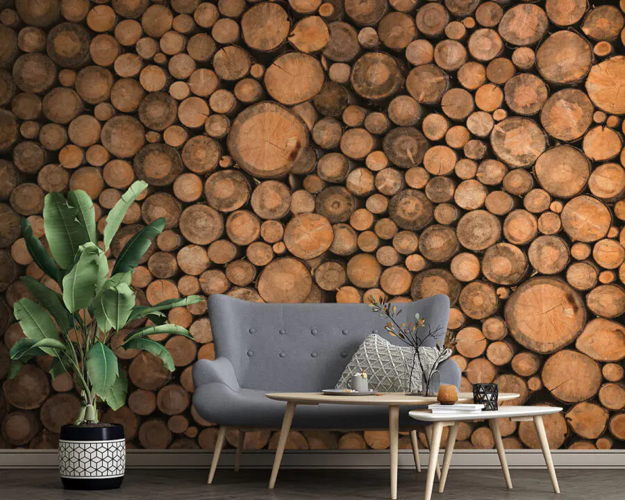 Fototapeten Gruppe von Rundhölzern