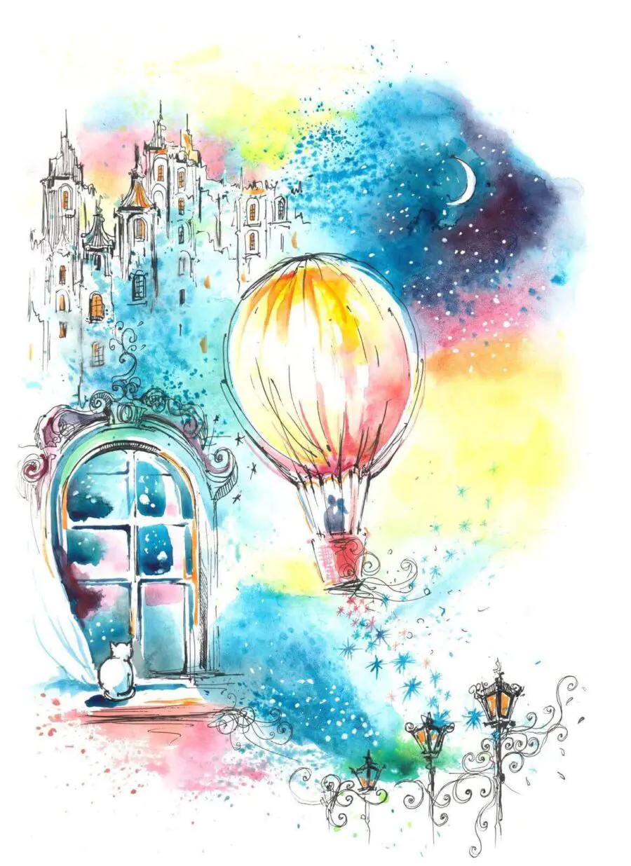 16.08 €8.84 €Fototapeten Aquarellillustration eines Hubschraubers und Heißluftballons